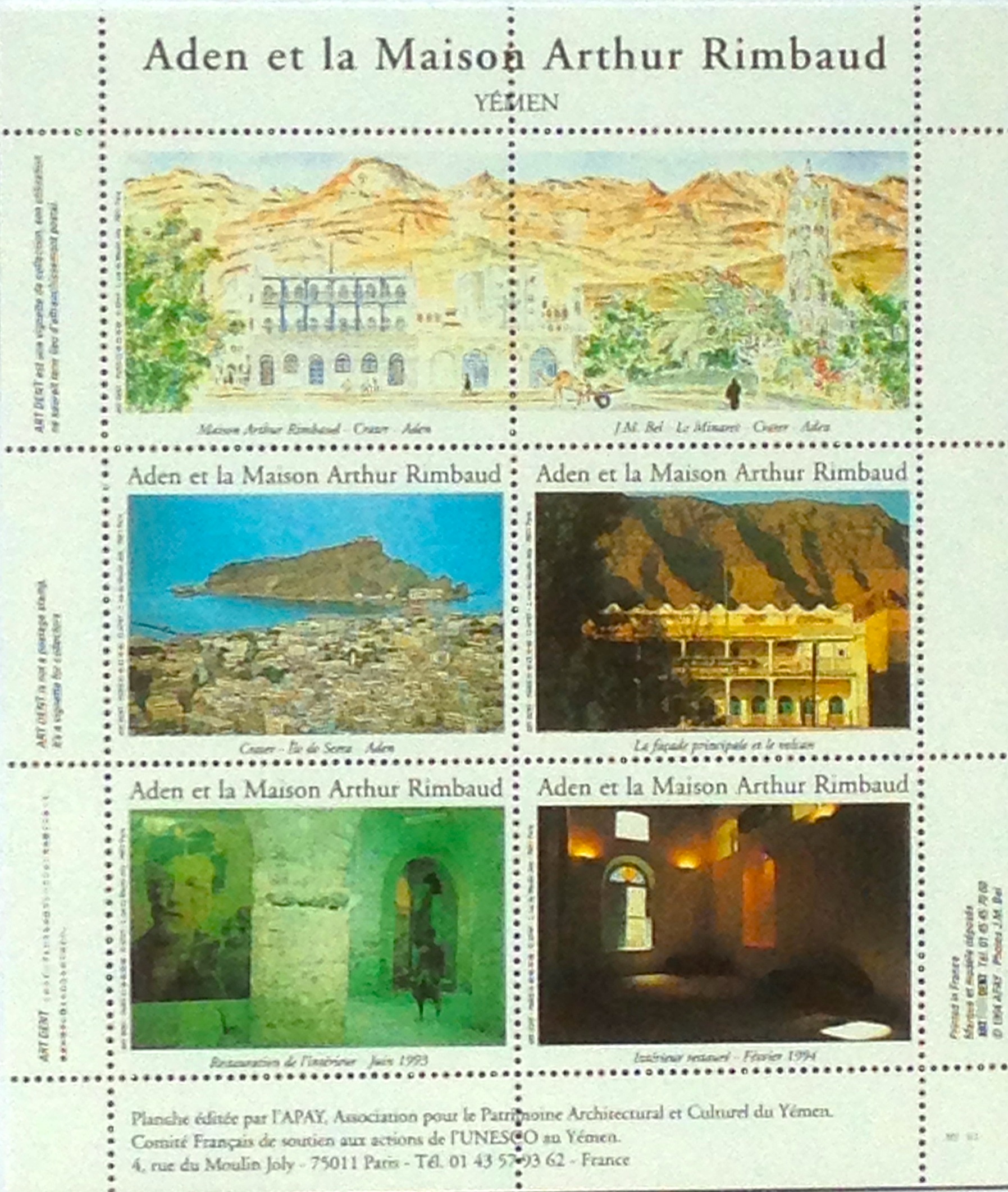 The man in charge of the space discussed Rimbaud and Aden with anyone who had a question. He had written a booklet which was available in both English and French. He had once made a painting of the Maison Rimbaud which was later printed as a postage stamp. There were other pictures which I think he had done himself, but they were each simply labelled as “A sketch by one of our special artists.” EVH