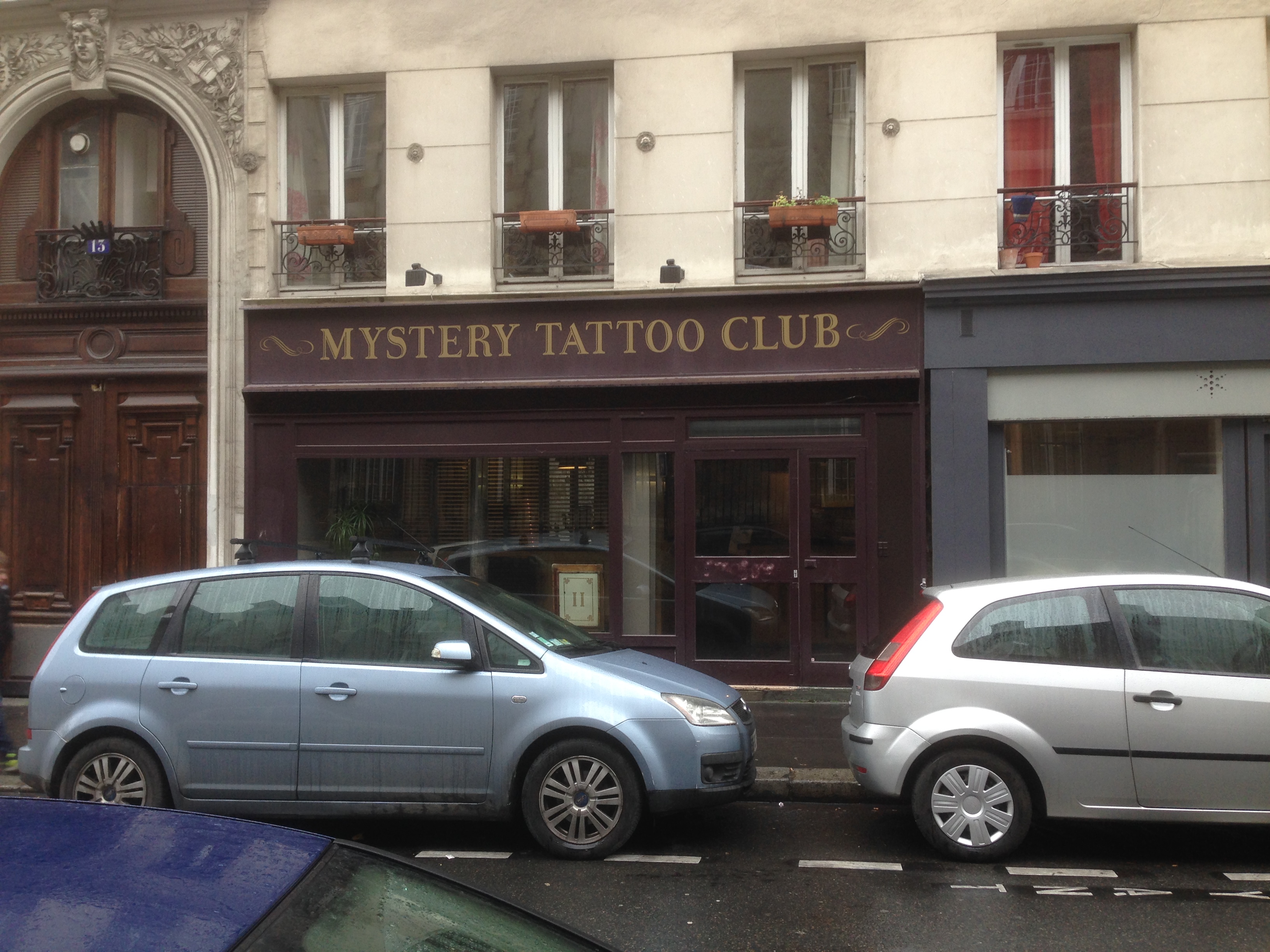 Would you want to be a member? I suppose it’s where they are kept, and I suppose it could be argued that the more mysterious, the better. The most discrete tattoo I ever encountered was on the index finger of the artist Lawrence Weiner which went round like a ring, and merely said FOR AS LONG AS IT LASTS.Back in Ireland, I have always been trying to make something of two parlours in Tipperary Town. One is a very small night club called BAR-CODE, and the other one of the many tattooists in the town, but this one is called INKWELL. SC