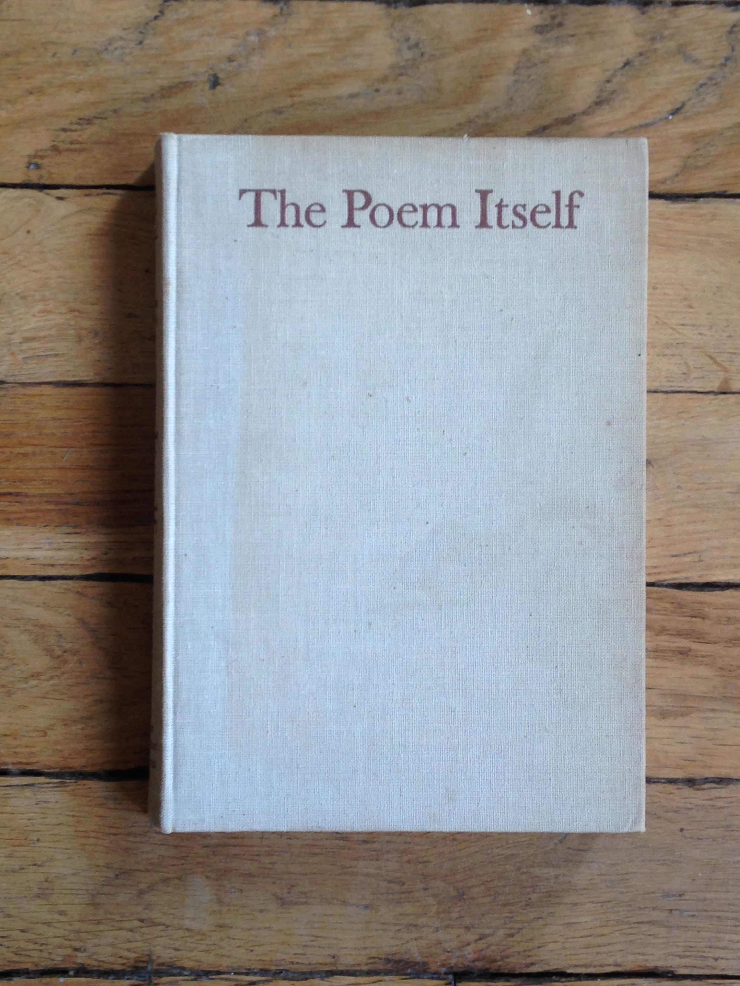 I thought I’d like to have with me a copy of Stanley Burnshaw’s 1960 book The Poem Itself but realised the battered paperback I had was left in some obscure place. So I sent for one and received this almost edible oatmeal version, an American edition. It was a really important book for me, presenting those nineteenth century French poets to me in a way I could not have previously understood. Not so much in translation, but more in dissection. At the same time it is comforting to have the plasticity of the volume around, almost like a favourite coat. There is an unfathomable certainty in its title, which I feel reassured by. SC
