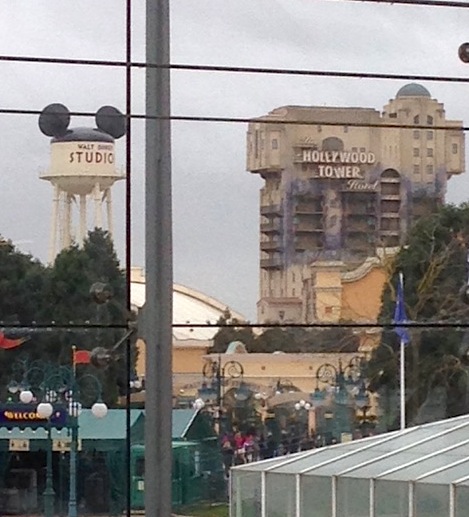 We passed through the entrance to the Park the other day, just in front of the turnstiles to go in. I had heard of cheap train tickets to the south from Marne La Vallée, the detention centre for Disneyland.So here we were, looking at the edifice from the safety of a station cafe. I was amazed at the depravity of it all, not least the over-distressed Hollywood Tower Hotel which looked as if it had been shot-at and burned. The Y and the W of the name panel were made to look as if they were falling off. Such artifice made me dwell on the culture of American Imperialism for rather too long, from the charade of the Wild West plywood main street made for a promotion video, to the bunker of a hotel in Disneyland. The water-tower with Mickey Mouse ears is one thing, an improvisation on what already exists, but the constructed imitation dereliction of the Hollywood Tower Hotel is another. They could probably have done it cheaper in Beirut or Baghdad, but they were only a dry-run for Disneyland. SC