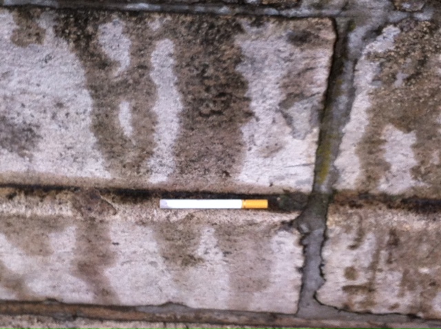I was waiting to cross the street on the northeast corner of the Pont au Double. I thought it was the Pont au Double but it seems to have been renamed in the last few years. It is now the Petit Pont Cardinal Lustiger. There was a soft drizzle which no one seemed to mind because it was better than the lashing sleet which had been falling minutes earlier. A well-dressed woman pulled a packet of cigarettes out of her bag and popped one into her mouth. While she was doing this another cigarette fell out of the pack and landed on the ground. She bent to pick it up. I could see that it was only a little bit wet on the very end. She did not put it back into the pack. Instead, she placed it between the stones of the wall of the bridge, just above the level of the pavement. She waited a second to see that it was safe and that it would not roll off. Then she lit her own cigarette. The light changed and we all crossed the street.