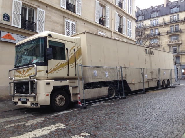 The biggest truck you have ever seen pulled into Rue Crussot to discharge its cargo of caged animals for the Cirque d’Hiver. How it will negotiate its exit, presumably backwards into the main Boulevard, I have no idea, and it certainly cannot proceed down the street, which only gets narrower towards the bottom. The truck is as large as the first part of the street, and painted a suitable beige to camouflage itself from the Hausmann vernacular apartment blocks, corresponding to the vehicle that would have captured the lions and tigers in their own more colourful habitat SC