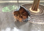 the umbrella of last year’s christmas tree { or one from the year before } tumbleweed in these gales through the city streets, now caught in a plastic bin-bag. SC